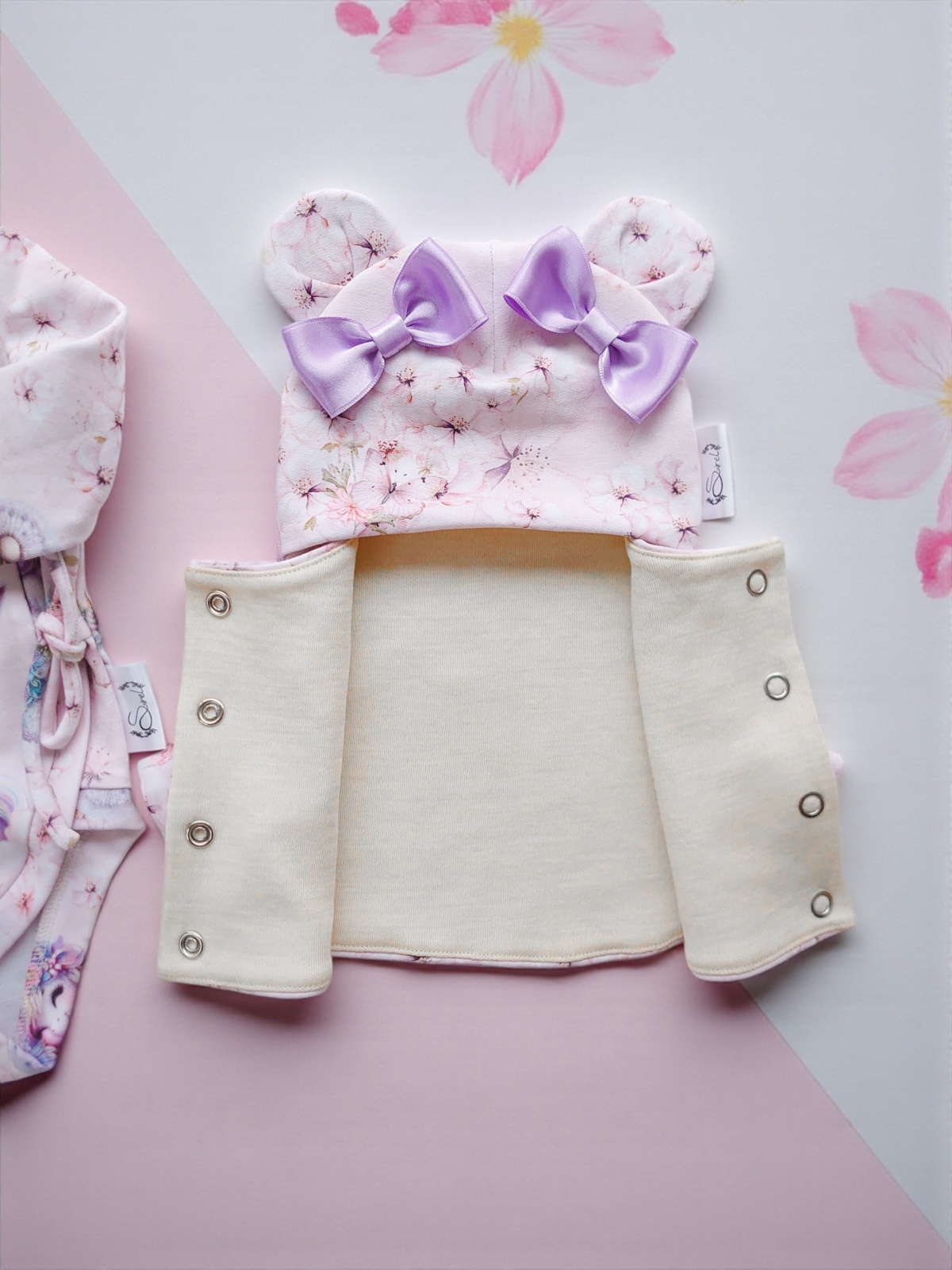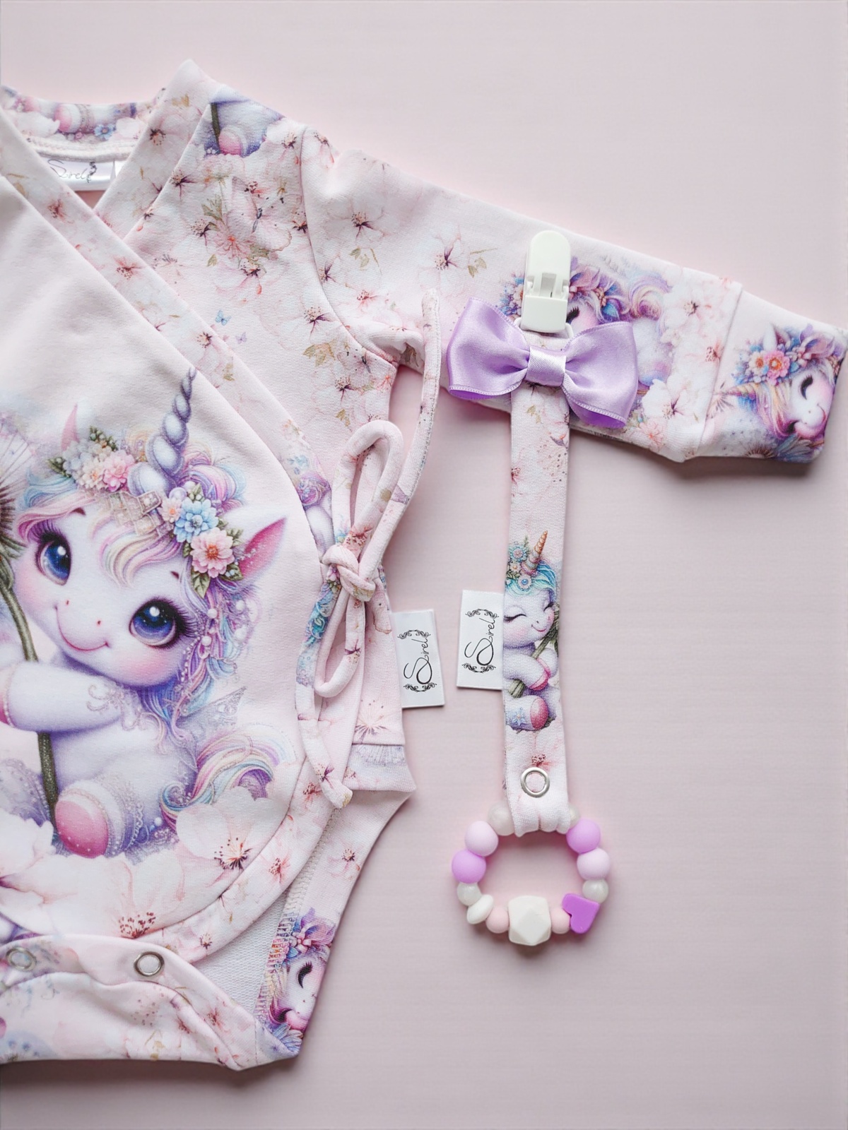 Kaunis heleroosa ja lillakirju maagiline tüdrukute kinkekomplekt/haiglast kojutulekukomplekt EIRA, milles on: